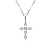 Graceful and symbolic, the Abigail necklace features a cross silhouette crafted from shimmering round and teardrop-pointed moissanites. Set in polished silver, each stone glistens with spiritual elegance, creating a look that’s both timeless and luminous. This pendant captures light and meaning in every angle.