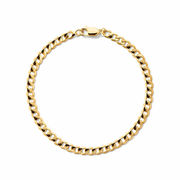 Crafted in solid gold, this flat curb link bracelet is defined by precisely engineered, tightly interlocked links that create a seamless, fluid drape around the wrist. Each surface is meticulously high-polished to achieve a deep, mirror-like lustre, enhancing the bracelet’s sculpted profile and weight.