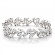 A graceful trail of light that moves with you. This stunning bracelet features a flowing arrangement of round, marquise and pear cut stones, inspired by delicate leaves in motion. Each stone catches the light like a whispered promise, wrapping the wrist in elegance, romance, and quiet confidence.