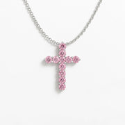A symbol of femininity, the Abigail necklace features a cross pendant adorned with soft pink moissanite stones, delicately set to radiate warmth and light. Suspended from a fine chain, this graceful piece offers a gentle blend of devotion and beauty — a timeless expression of love, hope, and personal style.