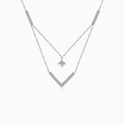 Gracefully layered for a modern yet timeless appeal, the Calla Necklace features two delicate gold chains adorned with radiant moissanite accents. The V-shaped lower strand shimmers with a row of brilliant stones, while the upper chain showcases a solitaire princess-cut moissanite, elegantly suspended to draw the eye. Designed to elevate any neckline, this versatile piece blends contemporary structure with classic sparkle—perfect for both statement layering and effortless everyday wear.