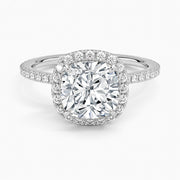 Radiant and captivating, the Liora Ring features a brilliant cushion-cut moissanite surrounded by a sparkling halo and pavé-set band. Its golden glow and timeless design embody elegance, romance, and lasting beauty.