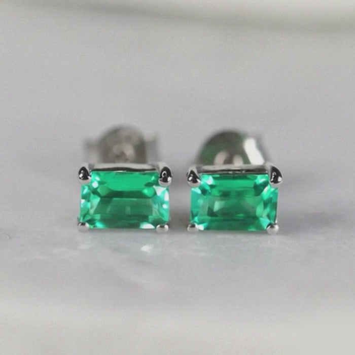 Add a touch of brilliance to your jewelry collection with these stunning emerald-cut green moissanite stud earrings. Set in a classic four-prong setting with a sleek silver finish, these earrings radiate elegance and sophistication. Perfect for both everyday wear and special occasions, they offer the brilliance of moissanite with a captivating green hue.